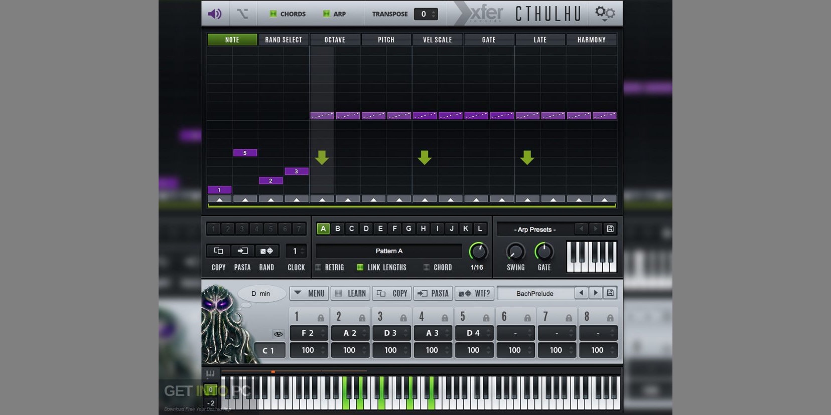 Företaget som gav oss monstersynth-pluggen Serum har en midi-plugg uppkallat efter H.P Lovecrafts världsätande vidunder. Själva tycker vi Cthulhu är en trevlig prick i inspelningsprogrammets menyer under rubriken midi-effekter. Pluggen är uppdelad i två moduler i ett och samma huvudfönster. På toppen har du en mycket avancerad ackordsgenerator, med vars hjälp du kan spela harmoniska tonföljder med en tangent. Under den hittar vi en sofistikerad arpeggiator som lika väl kunde kallas sequencer.
