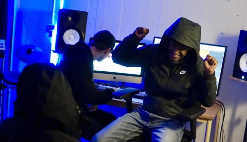 MÅNDAGSINTERVJUN: Micke, Dagim och Isak som varit med och byggt upp Studio Sätra – och Hanna som är studiopedagog och initiativtagaren till projektet – berättar om hur de gått från idé till färdig studio och om deras framtidsplaner.