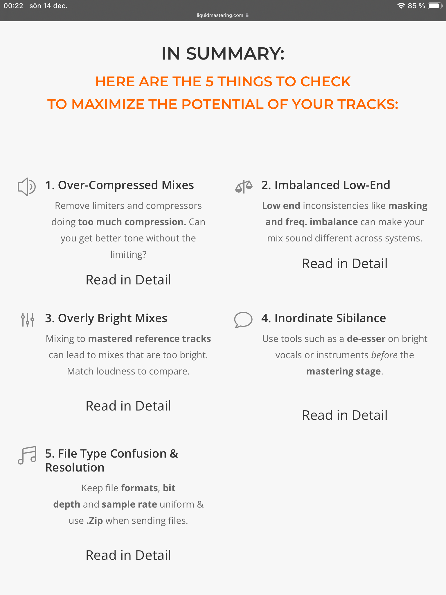 Discipuli Postat 3 timmar sedan Postat 3 timmar sedan Hittade en bra länk om ämnet. Man kan läsa mer genom att klicka på detaljer. https://liquidmastering.com/5things-summary/