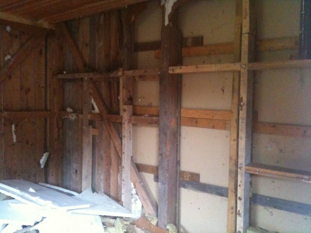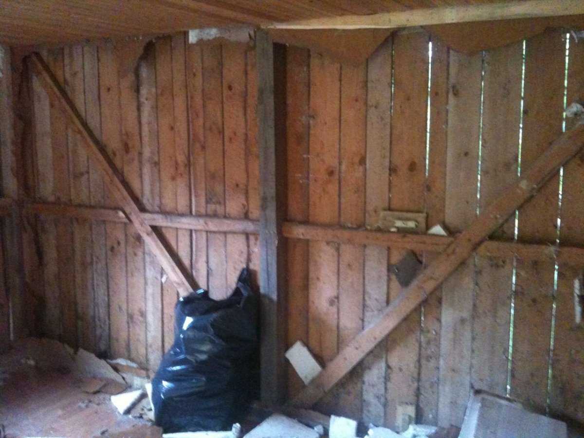 10. Kort uppdatering: Hela rummet är städat och rensat från allt. Vindpapp satt mot panelen. Isolering och regler ligger ute i släpan och väntar på att sättas dit imorgon =) Kabelrör för elen finns i bilen ...