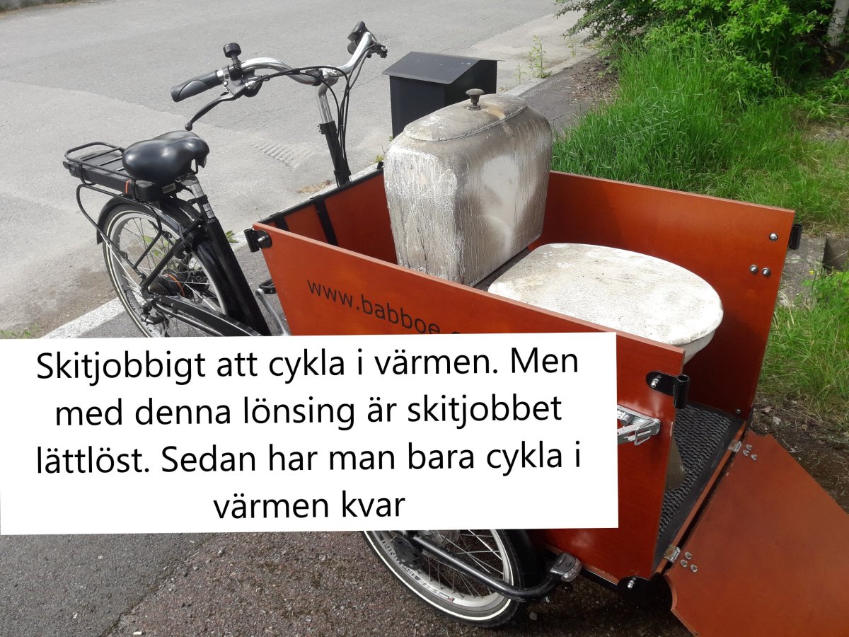 22. Fick i uppdrag att göra lite reklam för el-cyklande. Tror inte de kommer gilla mitt mästerverk med en gammal toa sedan branden jag hade här hemma...