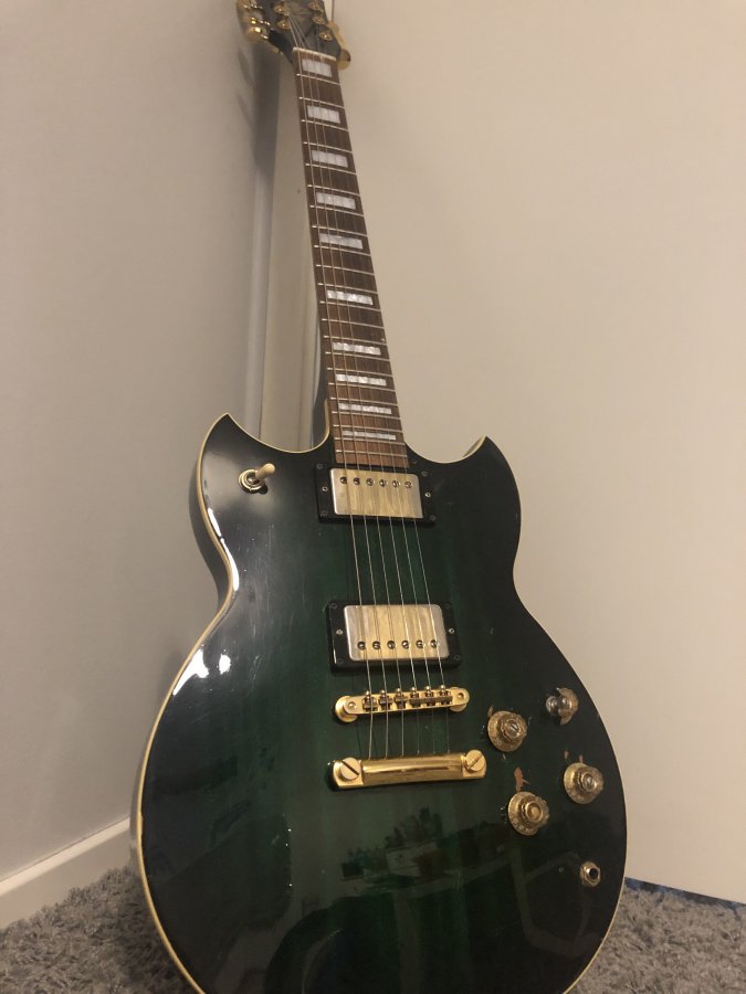 jag har en elgitarr jag vill sälja men vet inte vad jag ska sätta för pris. Det är en Yamaha sg 700s. Serienummer: 8FM1047. Gitarren är dock sliten på utsidan. Den har lite repor, alla volymknapparna är inte hela (men fungerar) samt lite lack har lossnat.