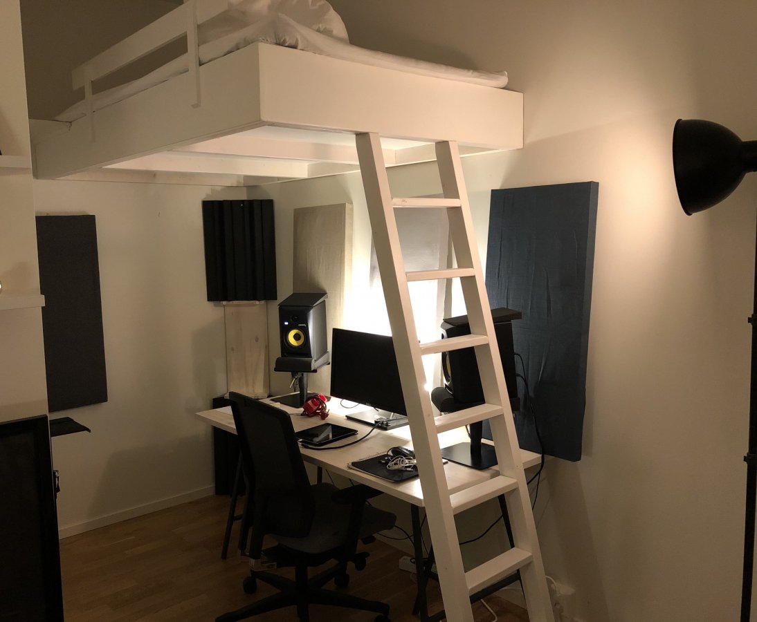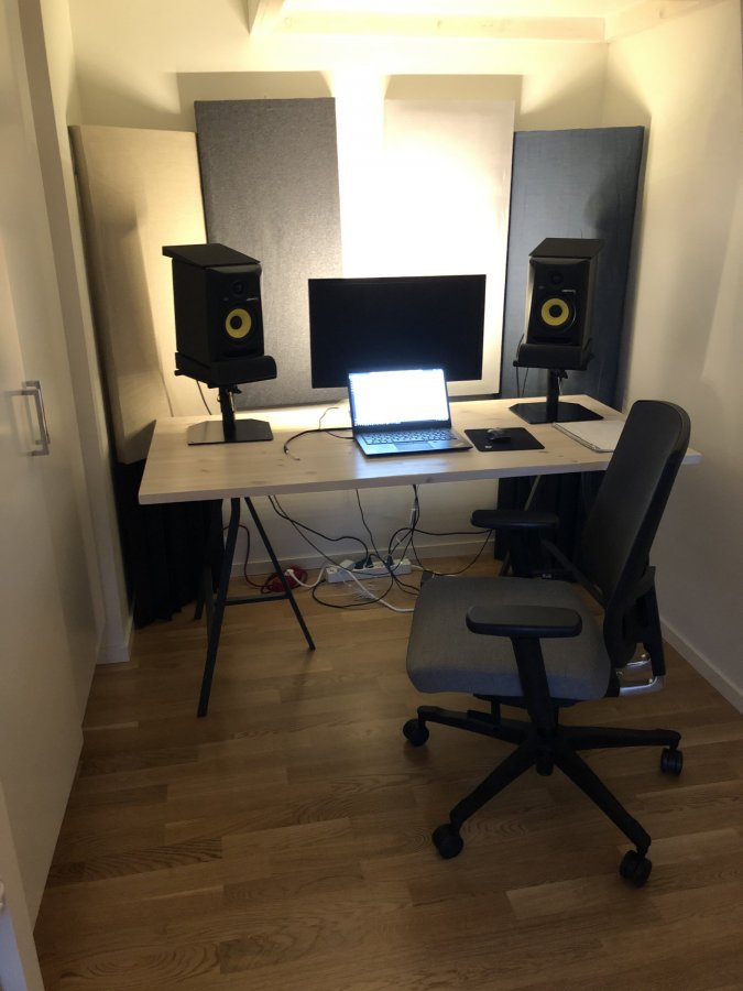 Jag hade uppskatta få lite input från er. Mina förutsättningar är inte dom bästa (bor i trång lgh). Hursomhelst, bifogar bilder så ni ser. Börjat bygga några absorbenter med och tänkte bygga mer - egentligen vad som helst för att få ordning på detta utrymme. Har hela balkongen full med glasull. Hörnen är kritiska. Skissar nu på corner traps för att täcka hela väggen upp i hörnen.