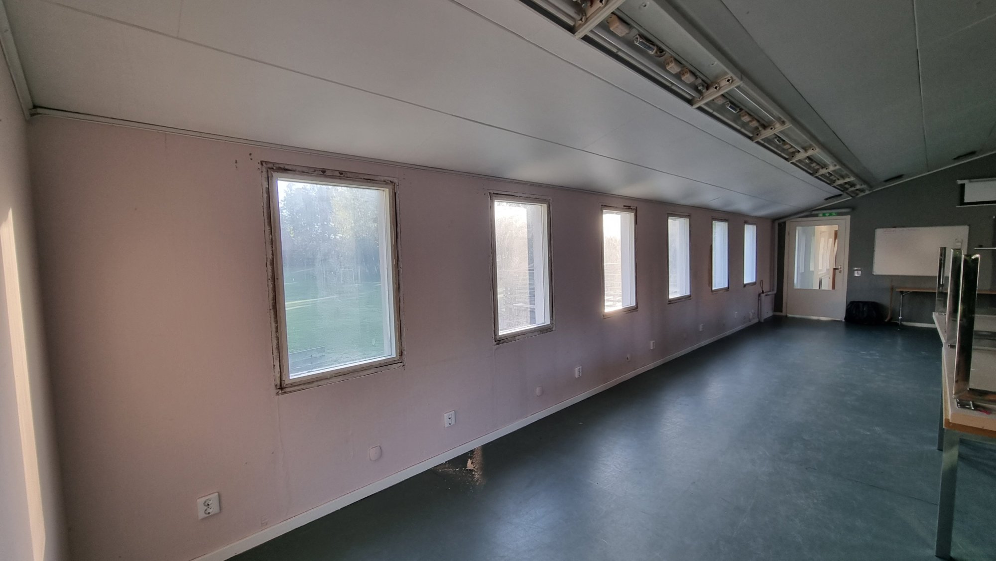 2. Hej! Vi totalrenoverar en samlingslokal där olika föreningar ska husera. Jag skulle behöva lite tips på ljuddämpning. Lokalen är 8x20 meter i golvyta, 4 meter till nock. Det kommer finnas bord och stolar, men i övrigt har lokalen innan renovering skapat eko. Vi tänkte sätta träpanel på väggarna och gips i taket. Skulle vara fint om det räckte med att limma upp gips i taket för att slippa spackla o slipa. Endast takytan är 180kvm. Vi har reglat ner från befintligt innertak för att kunna sätta spotlights. Bilden tagen innan vi monterade ner gamla belysningen o satte glespanel. Tacksam för tips om ljuddämpande material och metoder.