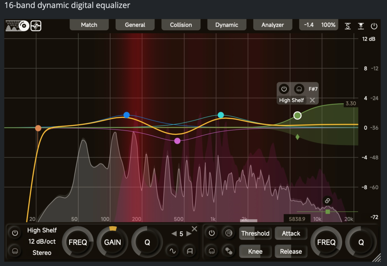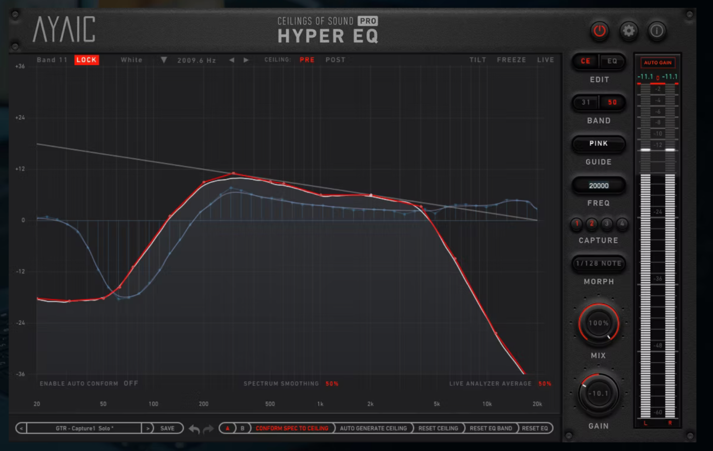 Bra info I denna artikel. Tackar! Jag fyller på.. Ceilings Of Sound Pro Hyper-EQ COS pro https://www.ayaicinc.com/cos-pro Understand COS https://www.ayaicinc.com/_files/ugd/bd561c_b6fc1247c4ef41a1b60fc29fb0a10db6.pdf En EQ som behöver ett dokument för att man skall förstå det, men när polletten ramlar ner då är det roligt och snabbt att jobba med. Dels för EQ av ett ljud till sig själv, men också för att testa ton/sound. Brus kurvorna driver EQn, men man kan manuellt justera eq också. Notera, finns inga Q värden.
