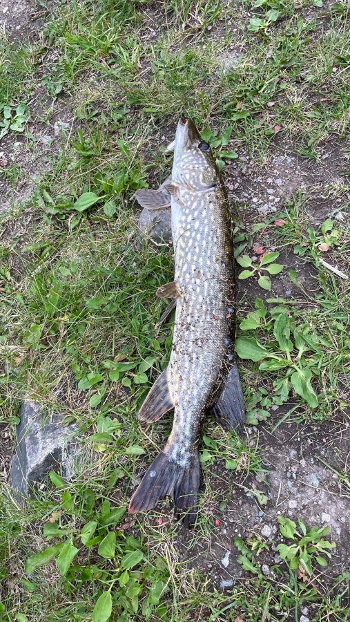 Hände för en liten stund sen. Jag hann inte plocka draget ur munnen den slet sig och drog sönder kroklåset. Sen sprattlade den sig ner i forsen. Kraftig lutning där jag stod. Men jag hade kameran redo i alla fall. En gädda som jag inte kunde lyfta upp med spöet , jag fick släpa upp den. Nu simmar den tyvärr runt med en vobbler i munnen. Vobblern var tvådelad ca 10-12 cm, hänger lite ur munnen på bilden. Den största hittils i forsande vatten för mig. Okänd vikt och längd. Så se det som en utmaning för er fisketokiga 😂 -