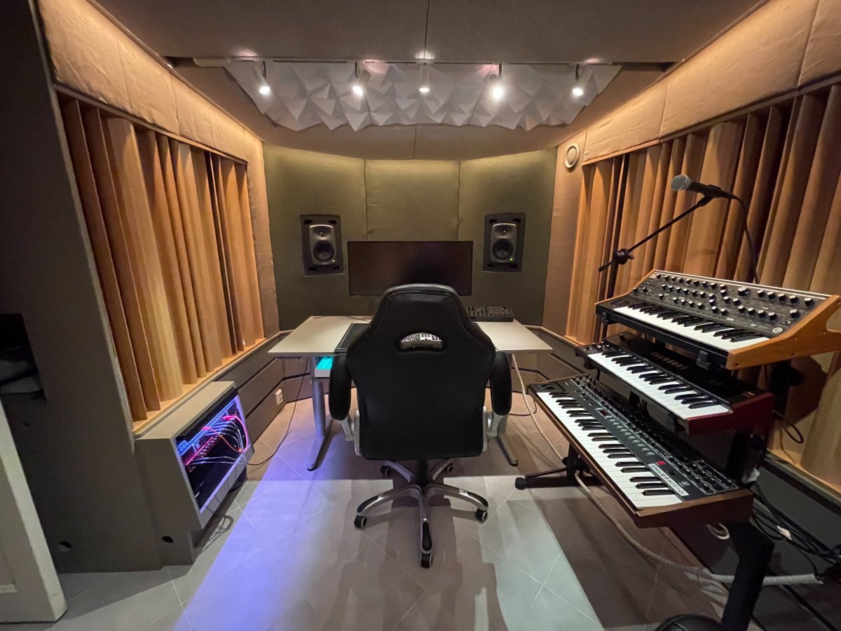 Jaha hörni, bygget blev klart till slut, efter mer än 10 år. Haft så mycket kul här inne att jag inte hunnit med att uppdatera tråden. Tog till slut in en professionell akustiker för att dubbelkolla mitt akustiktänk innan bygget färdigställdes. Det landade i en helt ny lösning och jag gick på den efter mycket om och men. Fyllde på med kommersiella diffusorer och har fem olika sorters isolering i väggarna. Högtalarna är friläggande i väggarna och står på betongrör fristående från väggkonstruktionen. Valde att klä in allt i linnetyg som släpper igenom ljudvågorna in i akustikplattorna. I de två bakre hörnen står två specialbyggda basfällor med fem fack vardera som är fyllda med pianoull. Varje fack har ett ingångsrör som "stämmer" basfällan likt en orgelpipa till den frekvens som skall dämpas, allt enligt uppmätning i rummet. Har fällt in två stageboxar med ljudkablar som löper till patchbay för att kunna växa i studion samt ha flexibilitet att koppla om utan att trassla till det tämligen lilla utrymme. Det är ingen stor studio, men perfekt för små projekt. Väldigt trivsamt och funktionellt för mina behov.