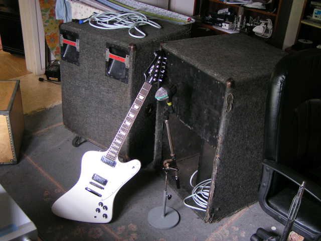 Det är det här lite överdrivet kraftiga basskaggesoundet jag är ute efter. Med fyr-fyra kggetramp och shuffle kan man tvinga igång dagens sega publik på ett helt annat vis än med det snygga hifiljud man får i moderna aktiva bandpasslådor. Har skaffat lite plywood för att lappa ihop hornen nertill, de håller så smått på att ramla isär. Väl inspelade, och runtfraktade. Vägde dem nyss på en gammal badrumsvåg, den visade ca 50 kg, de är ganska sä lätthanterliga ändå, storleken syns om man jämför med Firebirden, inte alls ohanterliga. Och en sån här låda matad med rätt slutsteg låter nog fan så mycket mer än en "modern" dubbelarton, så det är konstigt att de inte är vanligare. Man får ju mer ljud i förhållande till både vikten, och till elementkostnaden. Man klarar sig ju även med klenare slutsteg. "Jag älskar soundet av ett veckat horn som bygger på en akustisk princip," skrev Hegobald, det är verkligen huvet på spiken, jag tänker lika. Helt sjukt att först köpa dyra grejer med dåligt tryck i, sen släpa på vikt, element och slutsteg helt i onödan, det finns ju veckade horn... Såg nyss att Warfedale gör nya bashorn liknande Cervin Vega. Hornen kommer säkerligen att komma tillbaka. http://www.wharfedal...US/Default.aspx Var hittar man speakonkontakter och plattor att sätta fast chassiekontakten i? Kollad lite slött i Claes O och Biltema men hittade inga...
